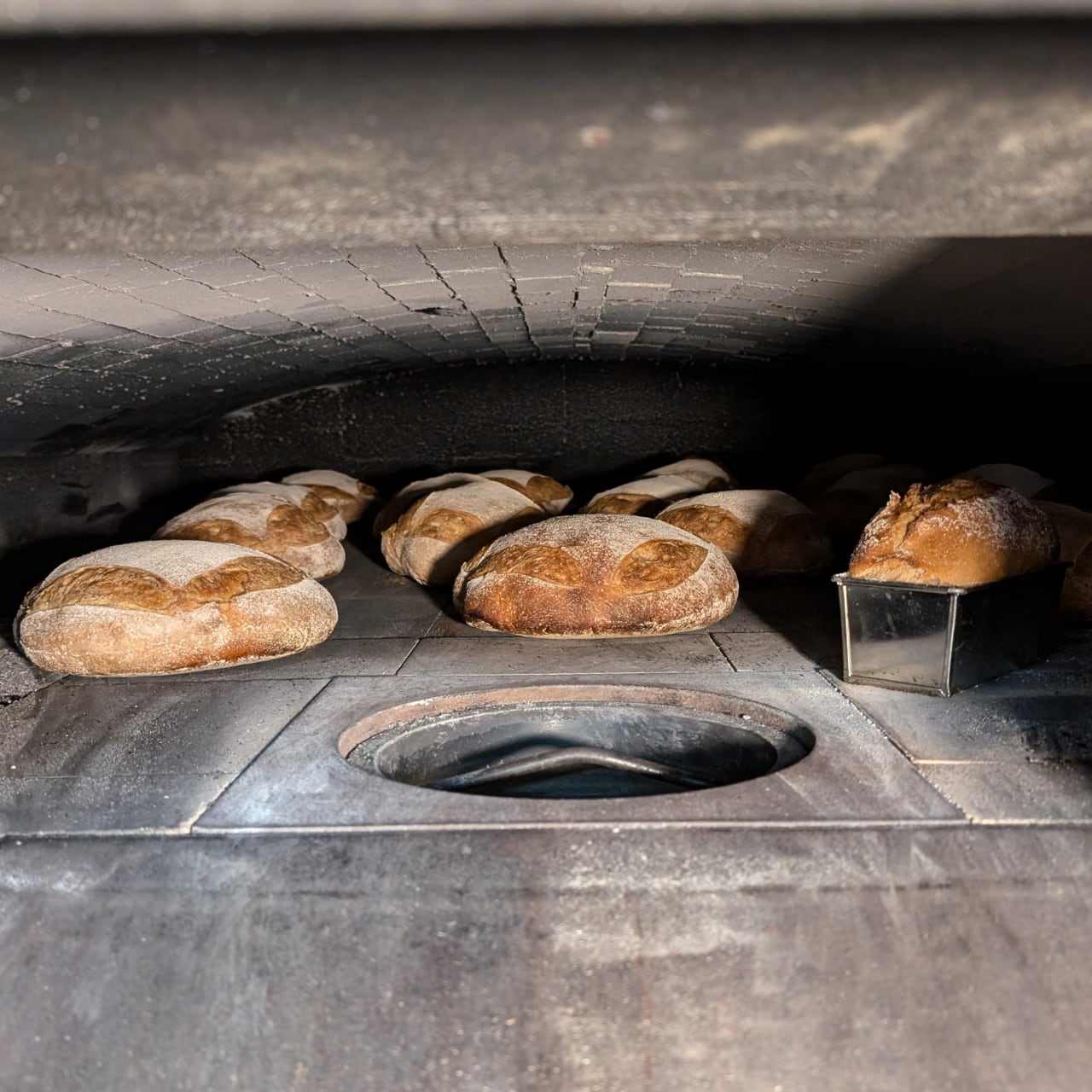 国産有機栽培小麦、国産有機栽培ライ麦、天日塩と水のみを使い薪窯で焼いたカンパーニュです。